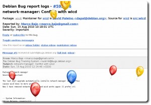 Se você visitar qualquer bug report do Debian no dia de hoje (em http://bugs.debian.org), verá balões, como mostrado abaixo: